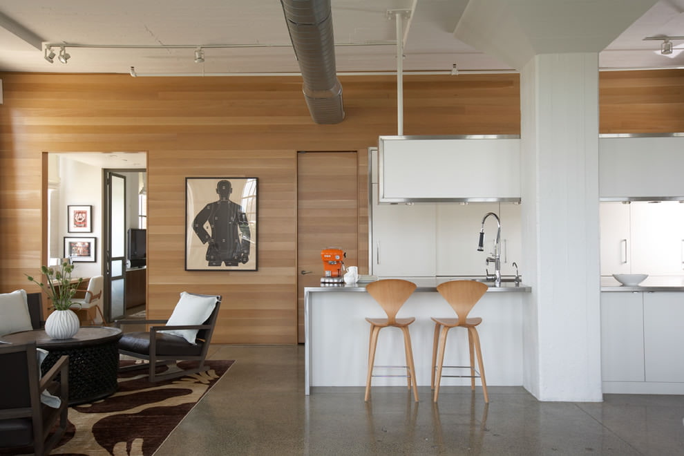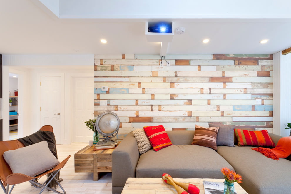 - an interior with a laminate on the wall should give an aesthetic pleasure, which will be helped by an assortment of colors and textures.