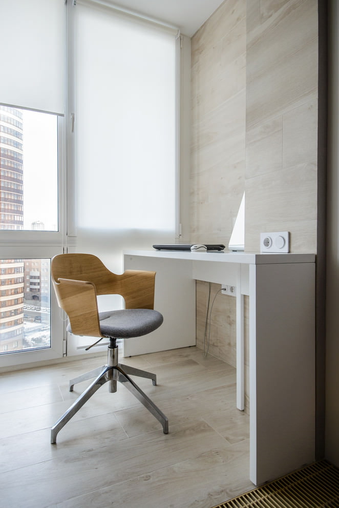 In the interior of the balcony, laminate has become often used for cladding. It protects the wall insulation from moisture, it can also be used to make shelves and revet cabinets on the balcony. A great option if the balcony serves as a study.