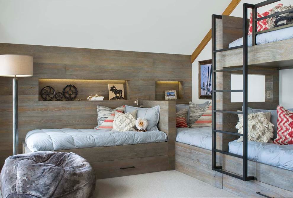 To create an accent in the interior, as in the photo, you can sheathe a part of the wall and ceiling with a board, as well as complement the design with lighting.