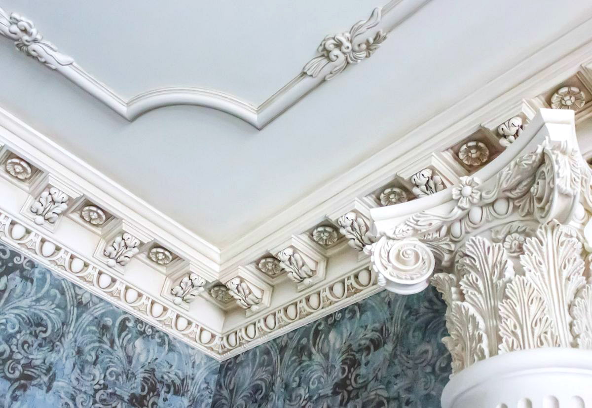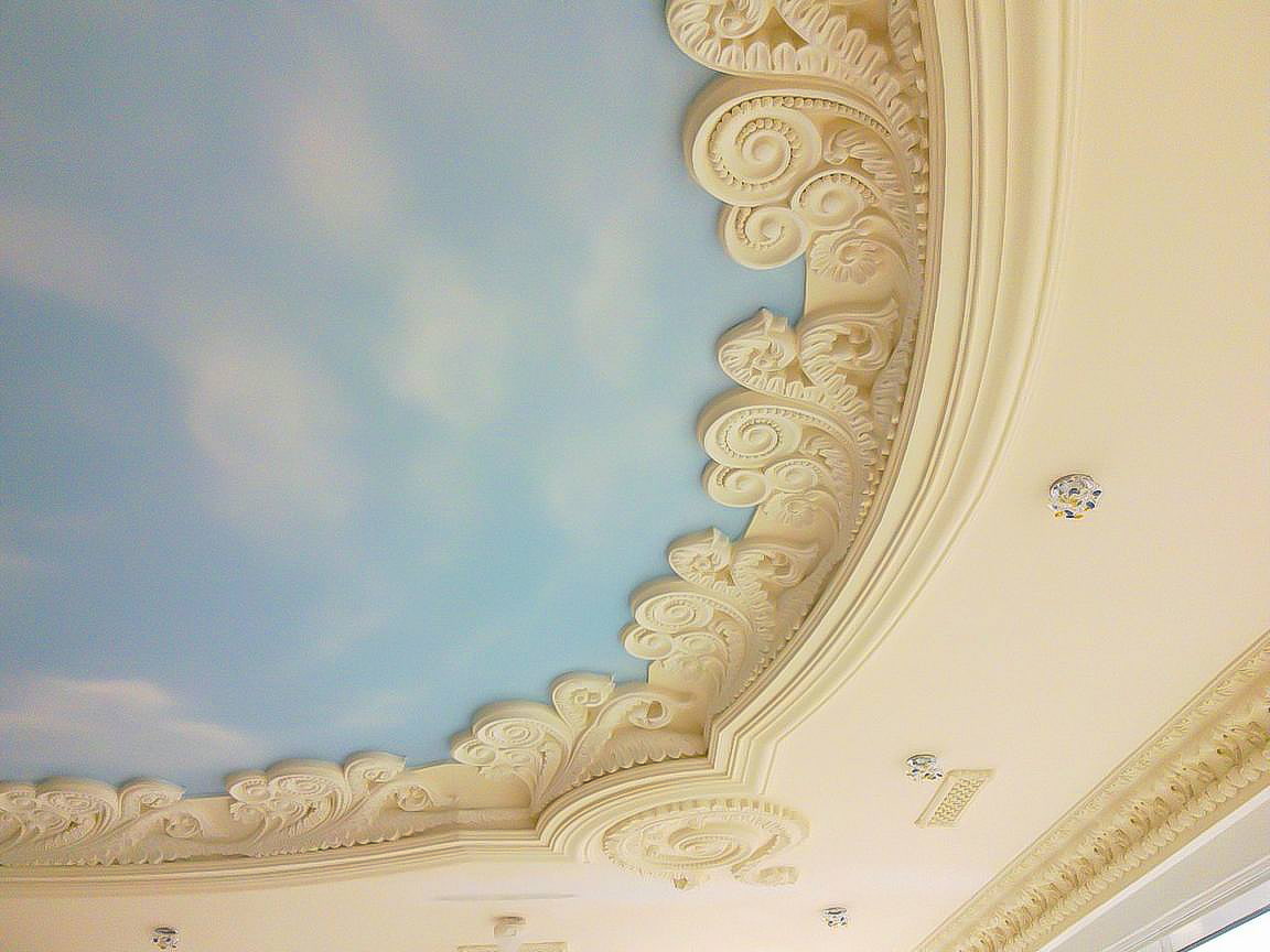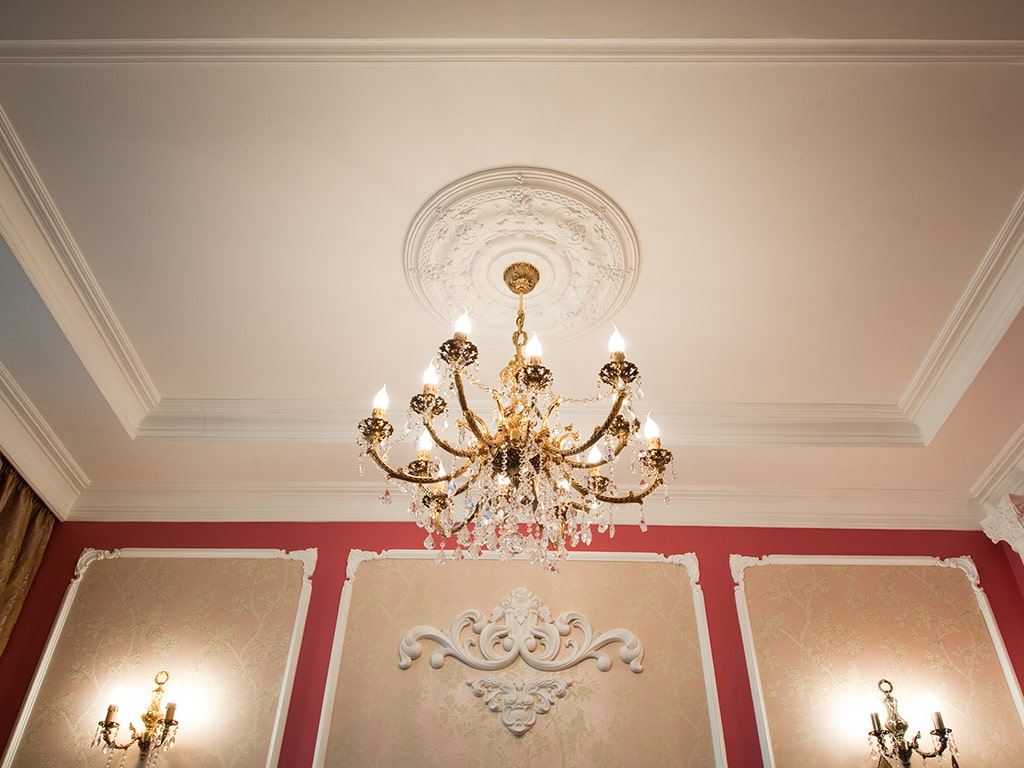 The stucco molding on the ceiling brings lightness and tenderness to the atmosphere. Intricate and complex configurations will help to combine the elegance of the overall picture of the interior, give demonstrativeness and unsurpassed artistic taste.