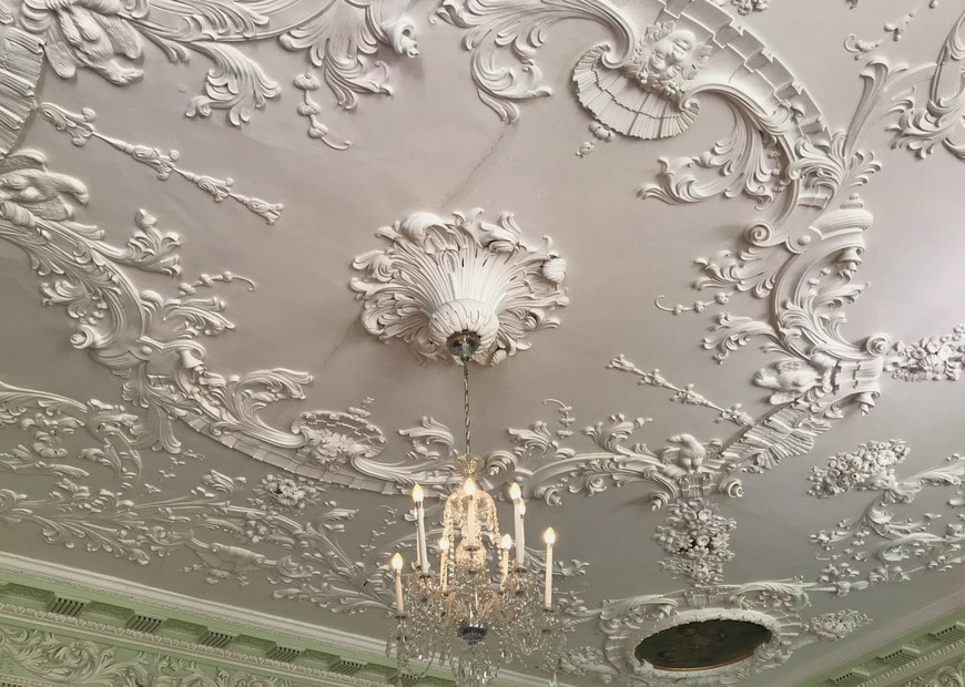 The sculpting also goes well with a variety of modern types of lighting. Such lighting perfectly emphasizes the marshmallow texture of the stucco decoration and makes it especially exquisite.