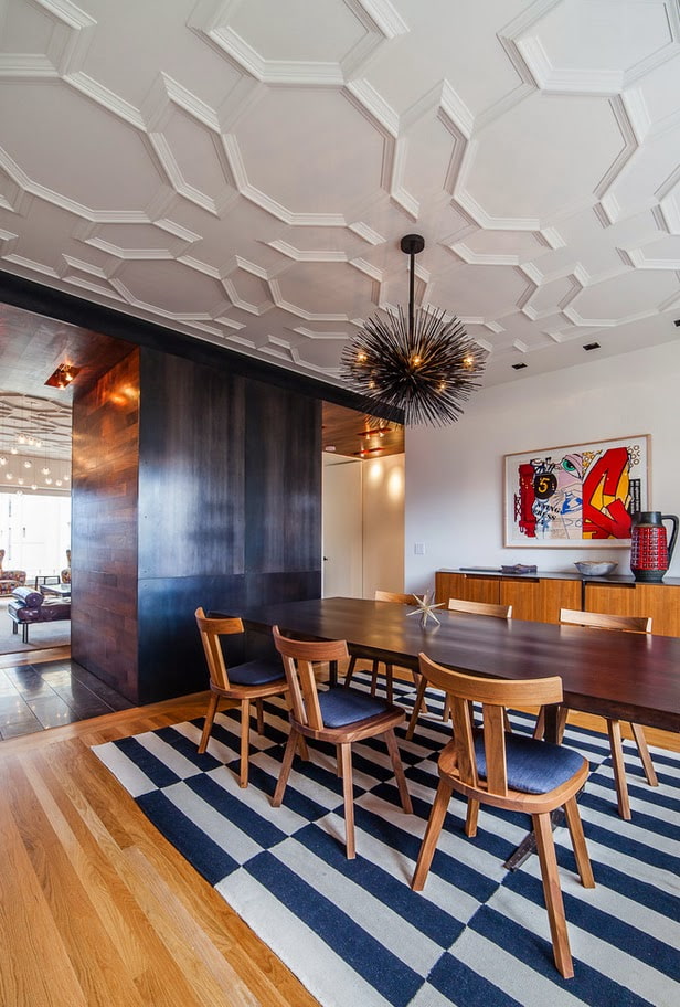 Honeycombs, rhombuses, squares, circles or any other shapes create interesting patterns and an unusual effect on the ceiling.