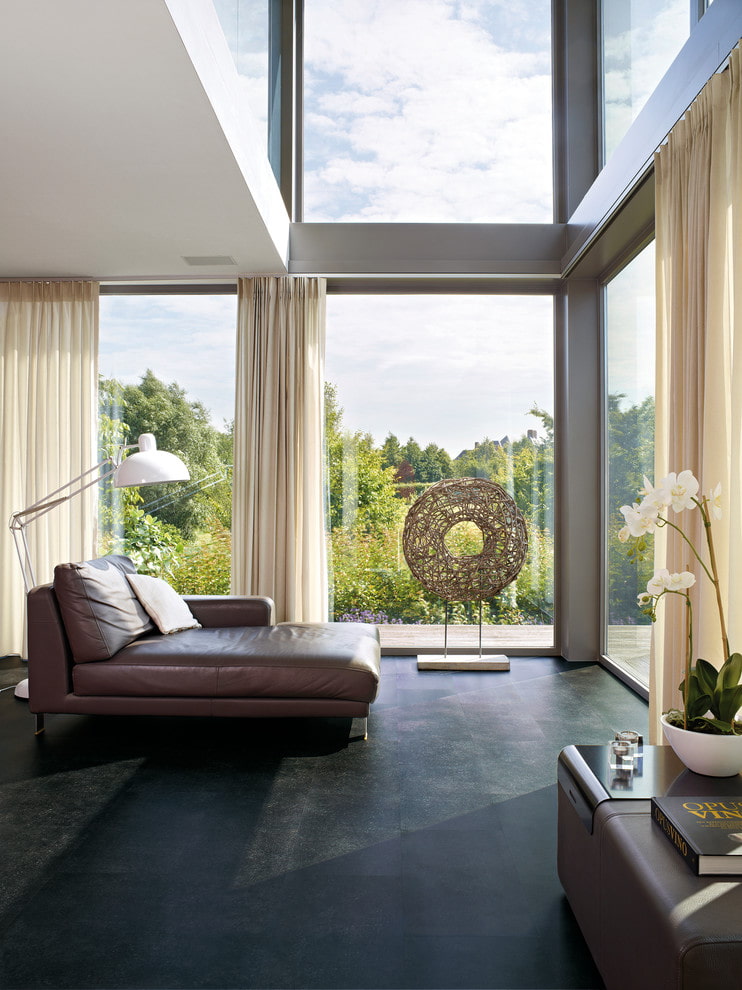 Black linoleum has an elegant and luxurious look, giving the atmosphere a certain pretentiousness and wealth. However, such a design requires a particularly careful approach.