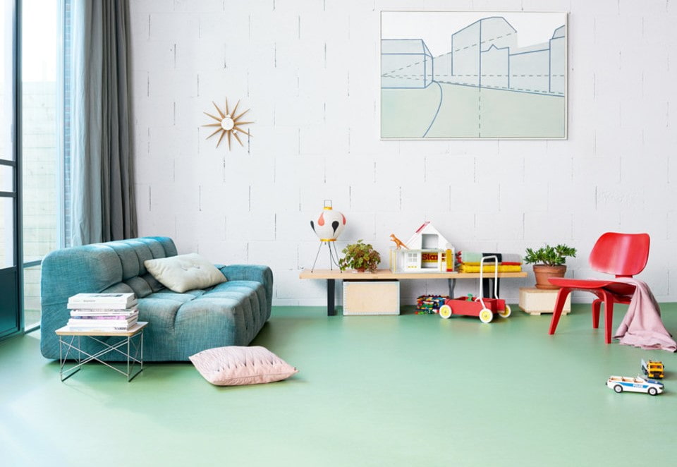 Linoleum in light or bleached colors, not only compensates for the lack of natural light, but also fits perfectly with any furniture, and is also more practical, since dust and stains are less noticeable on it.