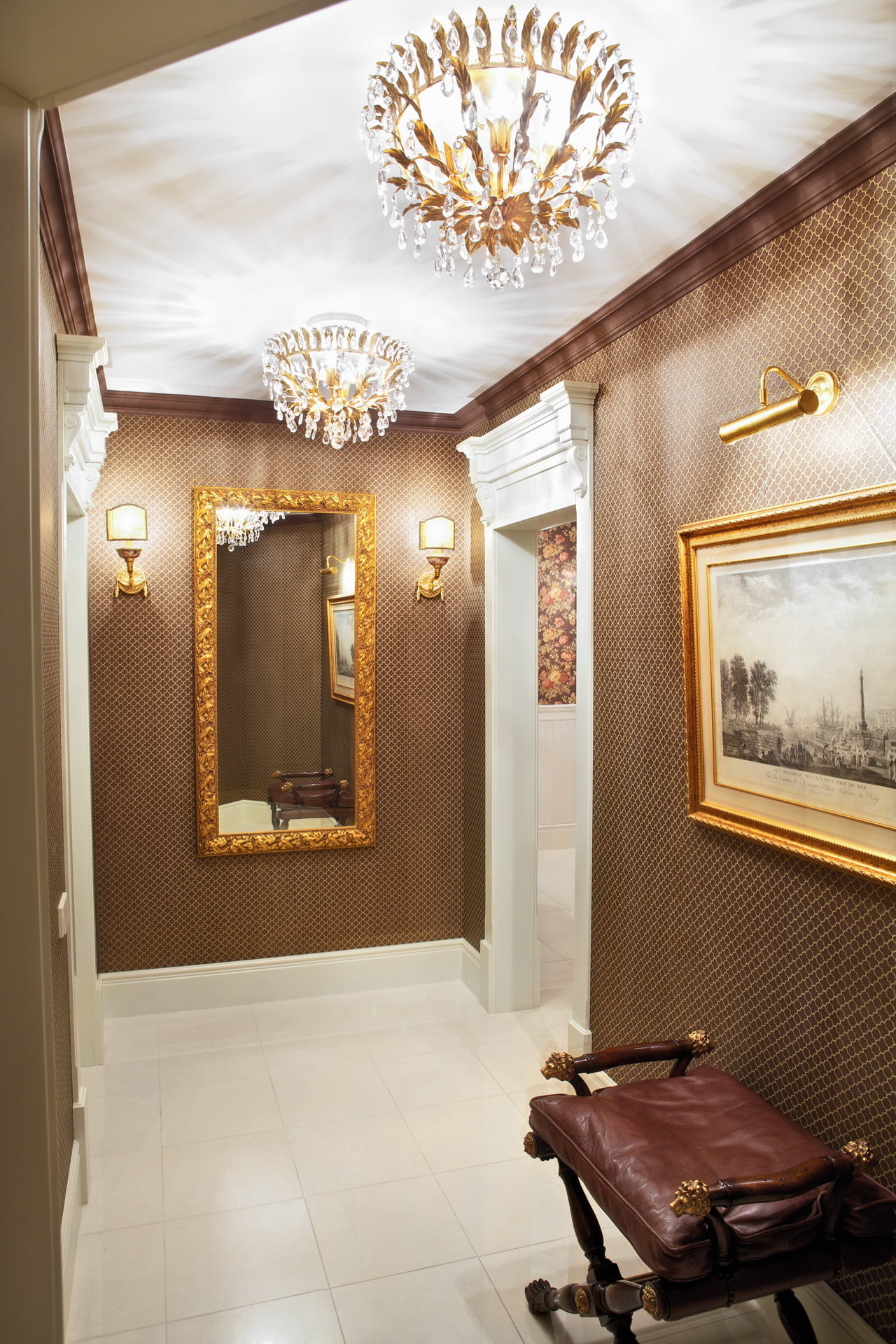 In a fairly spacious bathroom with a high ceiling, it is possible to place a not too bulky chandelier. When choosing a product, you need to take into account that the lamp is waterproof.