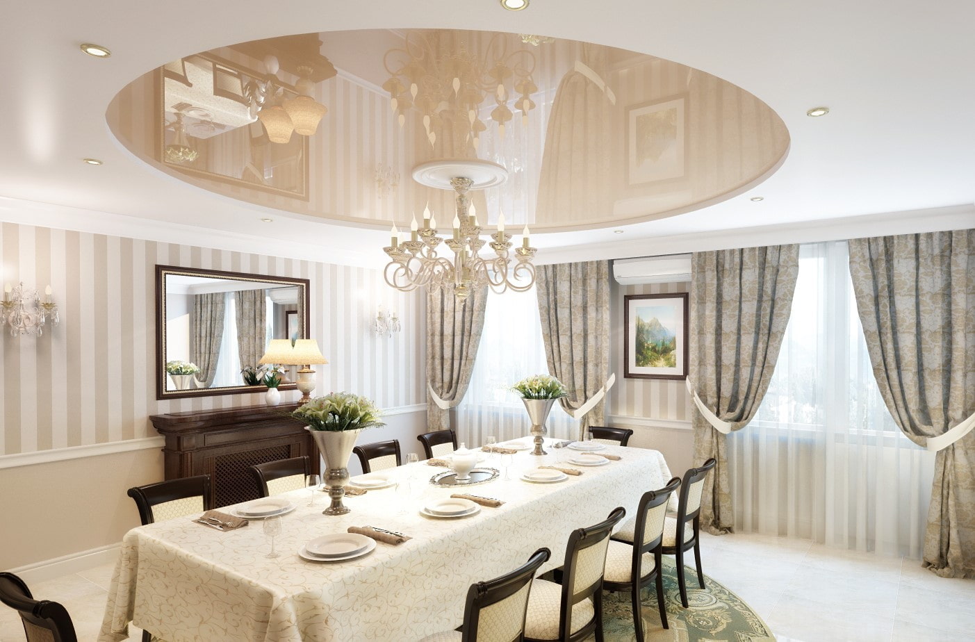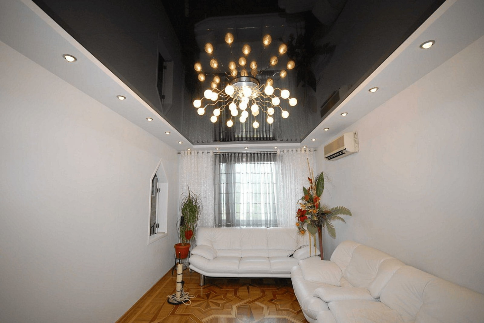 Stretch ceiling is a blank canvas on which the chandelier can act as an original accent, allowing not only to create high-quality light in the room, but also to transform the overall interior picture.