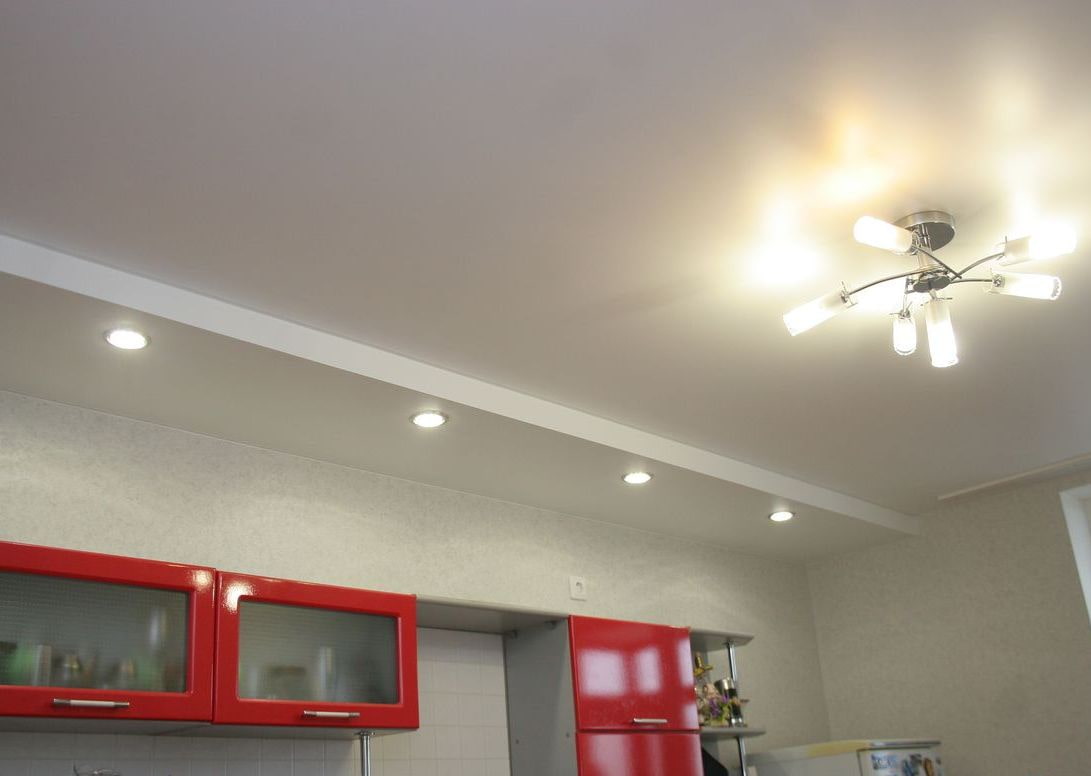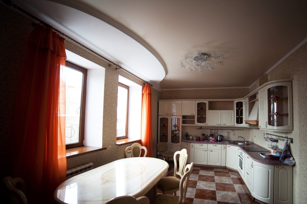 Due to their practical characteristics, stretch products are best suited for the kitchen. Since this room is more prone to dirt than others, and the ceiling has to be washed much more often, the matte surface is convenient in that it will not show streaks.