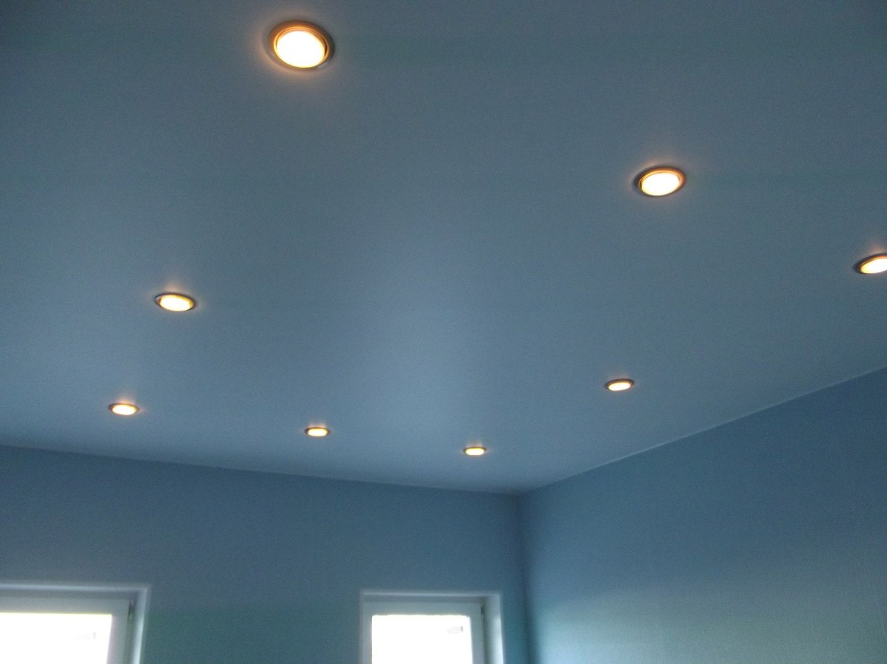 Several small lamps with a point arrangement in different places on the ceiling, allows you to fully or partially illuminate a certain area in the room.