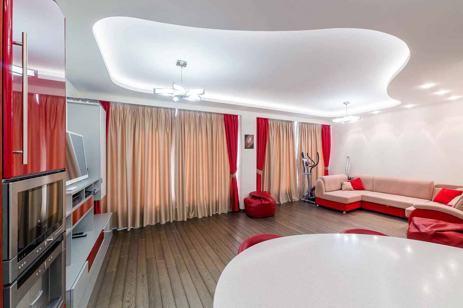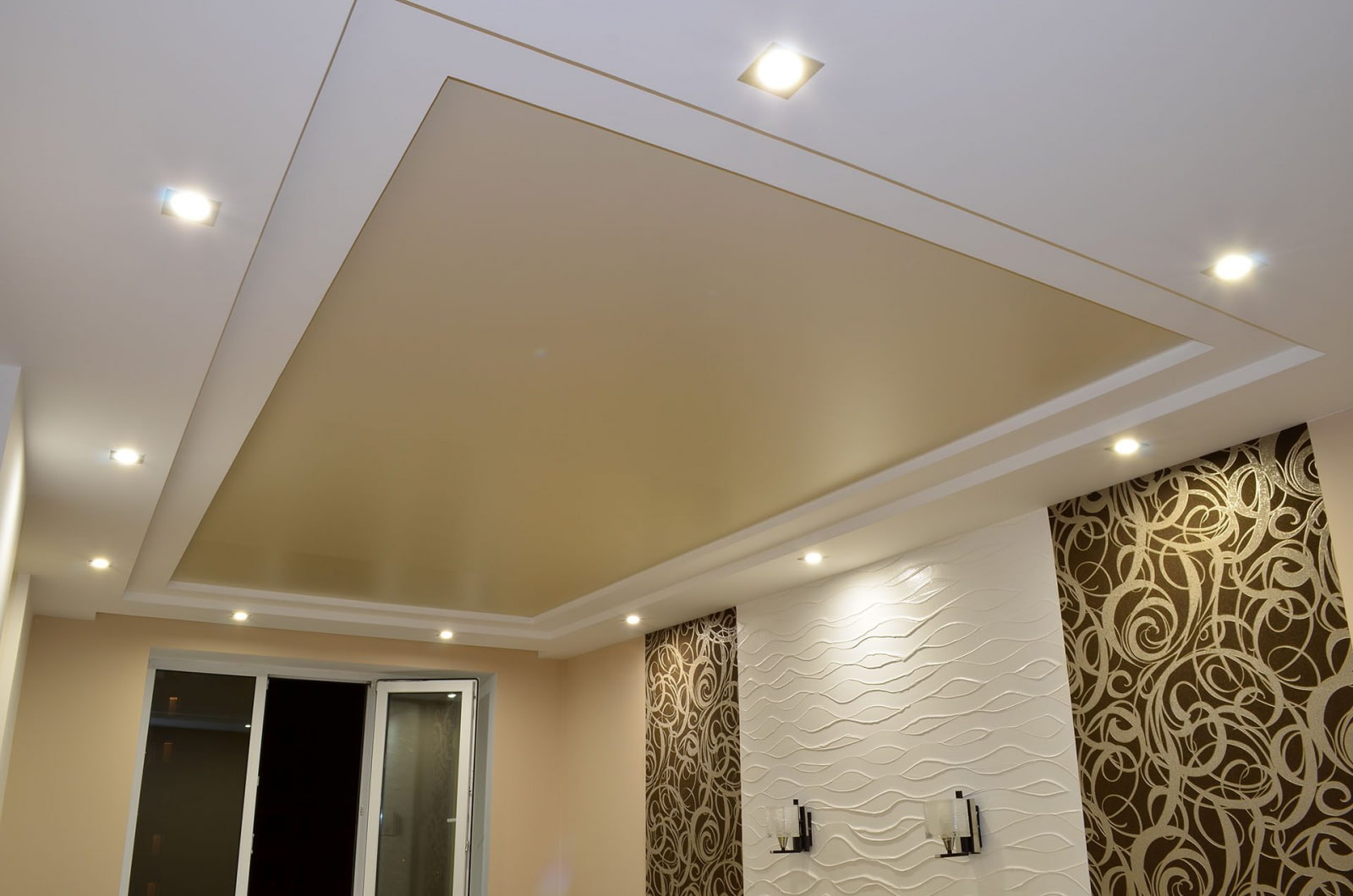 Ceilings with a calm matte texture are considered versatile. They create a perfectly smooth and even surface, do not create distracting glare and streaks and do not lose their appearance over a very long time.