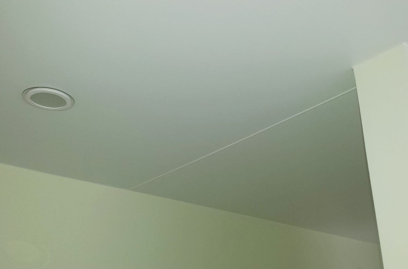 The photo shows a matte floating ceiling with LED lighting.