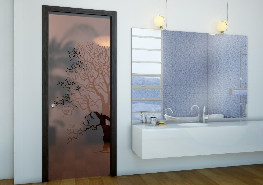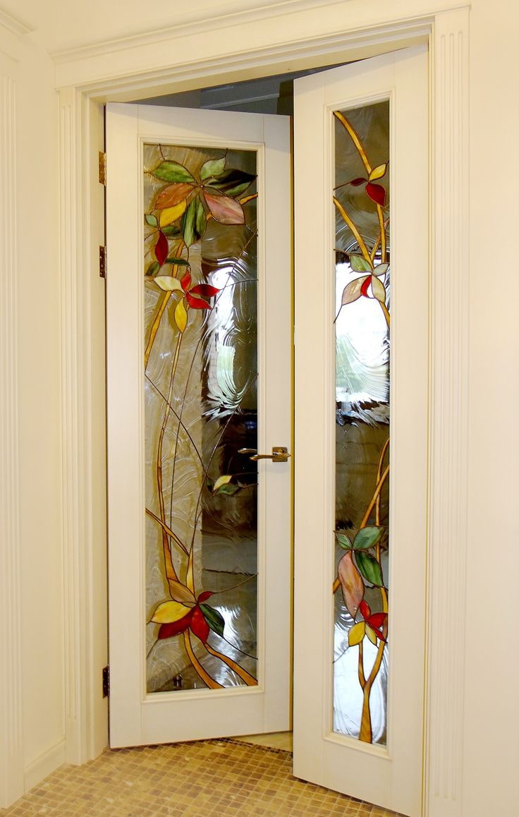 With the help of various designs and patterns on the glass, you can turn the door into a real art object.