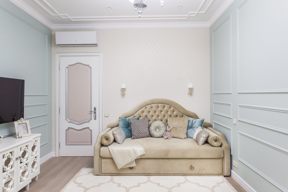 Thanks to such decorative elements, which have different texture and relief, it is possible to form a fabulous atmosphere in a nursery.The interior will look very original with walls decorated with moldings in bright colors.