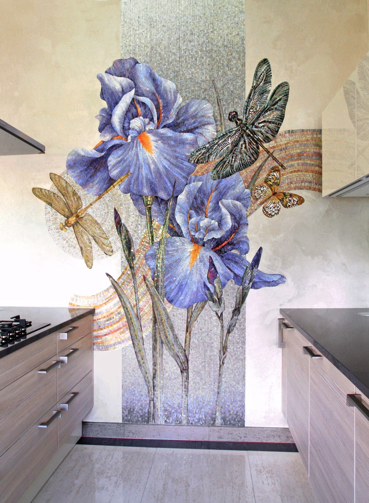 A mosaic made from natural raw stone such as marble, onyx, lapis lazuli or jasper, has a natural convex shape, has an incredibly luxurious appearance and is perfect for room decor, both in Provence, country and modern designs.