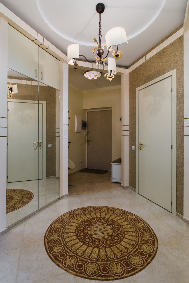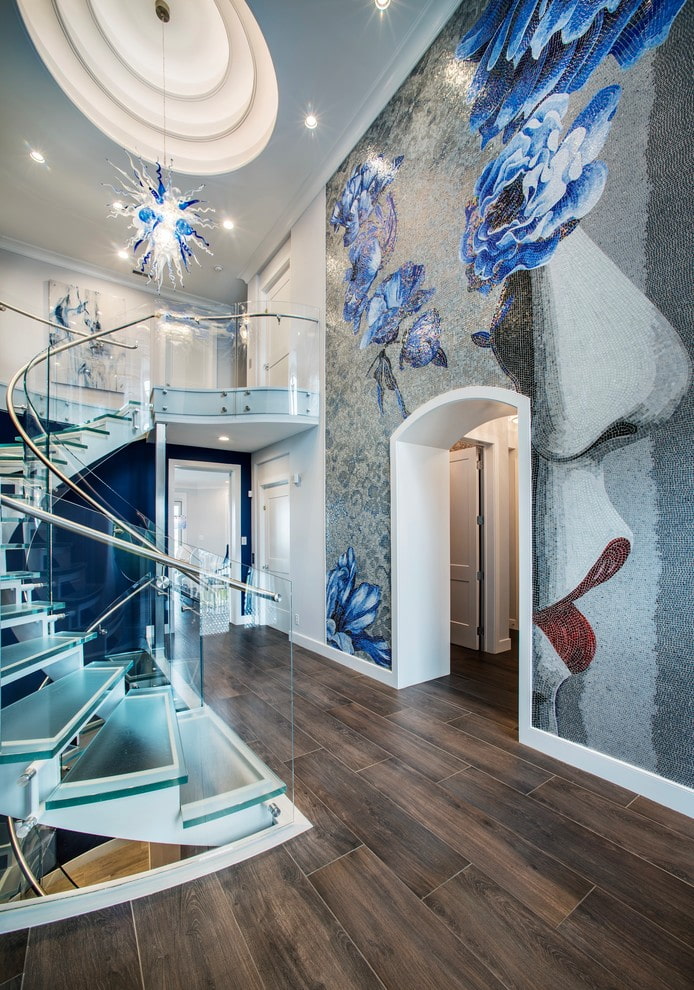 Mosaic tiles on walls or floors will look especially good in the hallway. Due to the variety of types, it is possible to realize the most daring design ideas and thereby emphasize the overall design favorably, endowing it with status and aristocracy.
