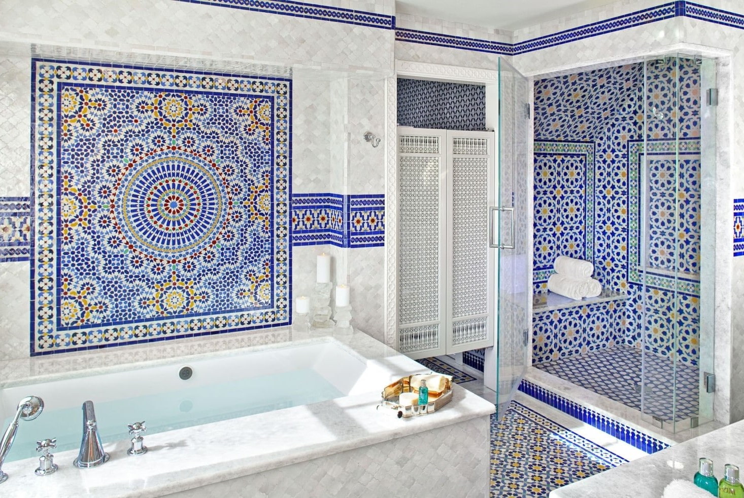 Complex, mathematically verified Arabic patterns, characterized by a huge number of elements, strict symmetry and combination of colors, will form a truly majestic atmosphere of oriental palaces in the room.