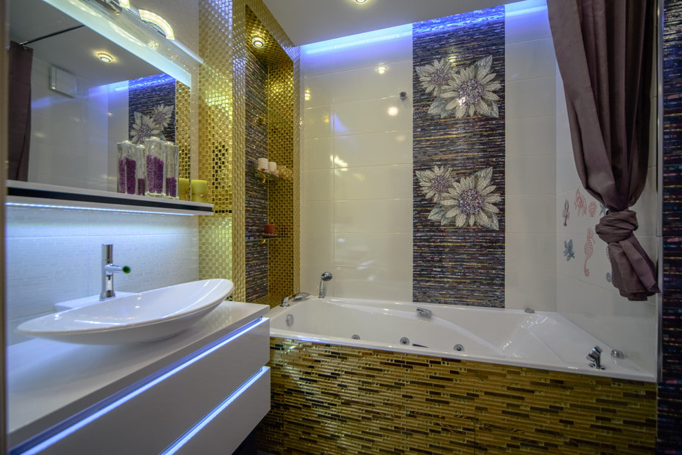 Thanks to the mosaic, it is possible not only to decorate the walls, floor, shower room and other furnishings, but also to significantly transform the bathroom and visually change its spatial perception.