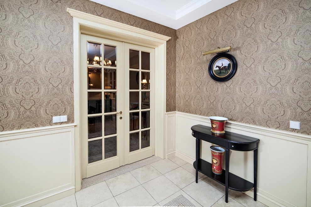 - Hallway. The entrance door to the apartment is most often located here. Platbands, door slope to the floor and threshold are installed from metal, natural wood or dense plastic.