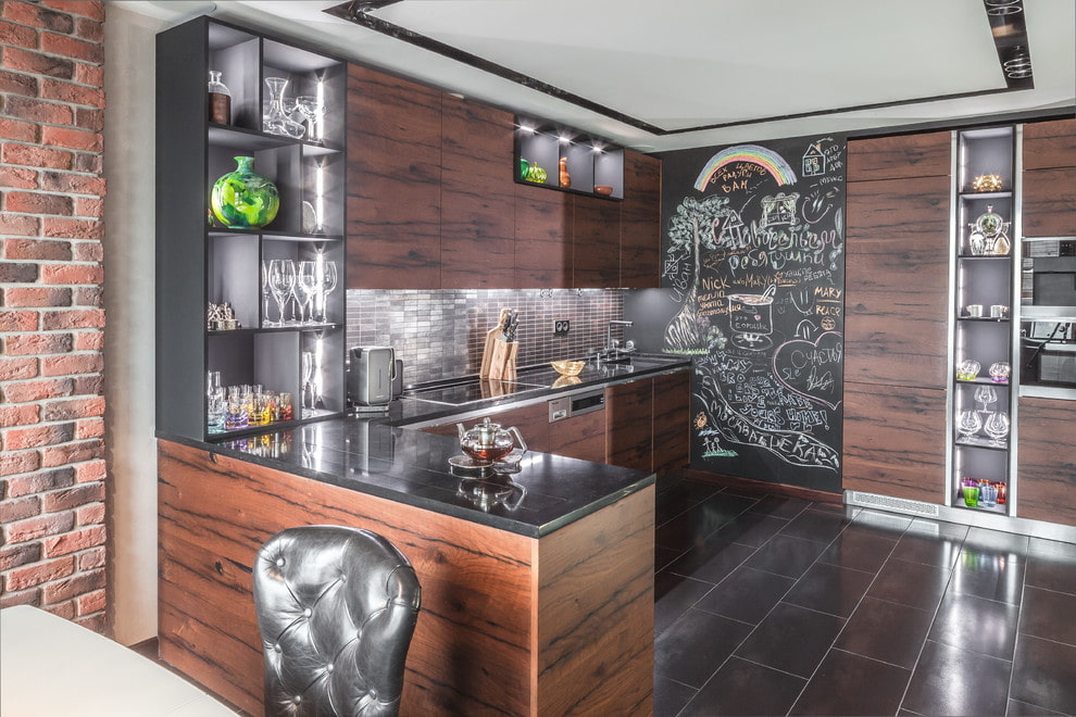 In an industrial loft, embossed products with imitation of brick, masonry, concrete surface are often used, or metallized models with traces of rust and the effect of aging are used.