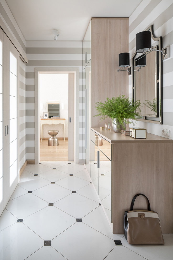 This cladding allows you to achieve a rational, thoughtful and creative design of the corridor. The tile will not only delight with its aesthetic appearance, but will also serve for a long time.