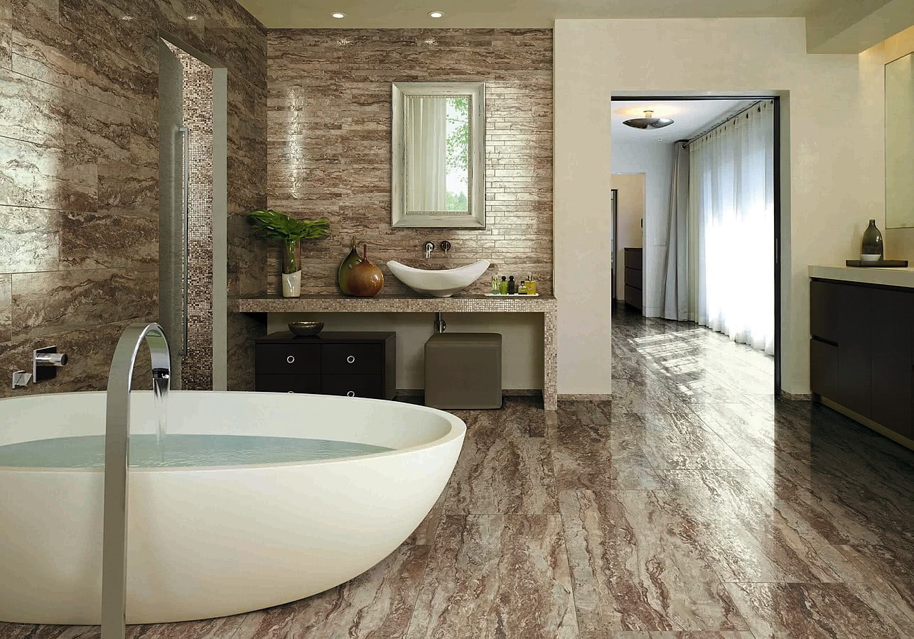 The cladding in discreet warm beige shades is in perfect harmony with any design and provides an opportunity to give the atmosphere the necessary coziness.