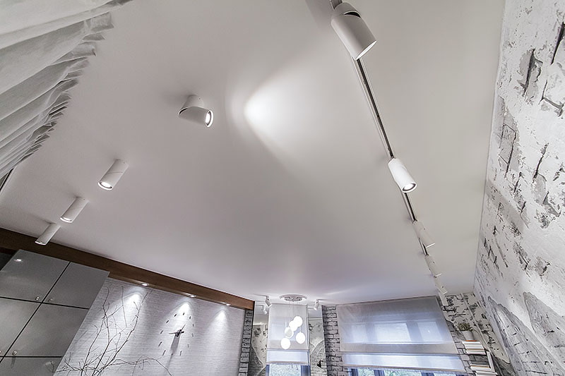 When choosing a particular configuration, designers often compare photos of stretch ceilings in interiors of various sizes and styles.