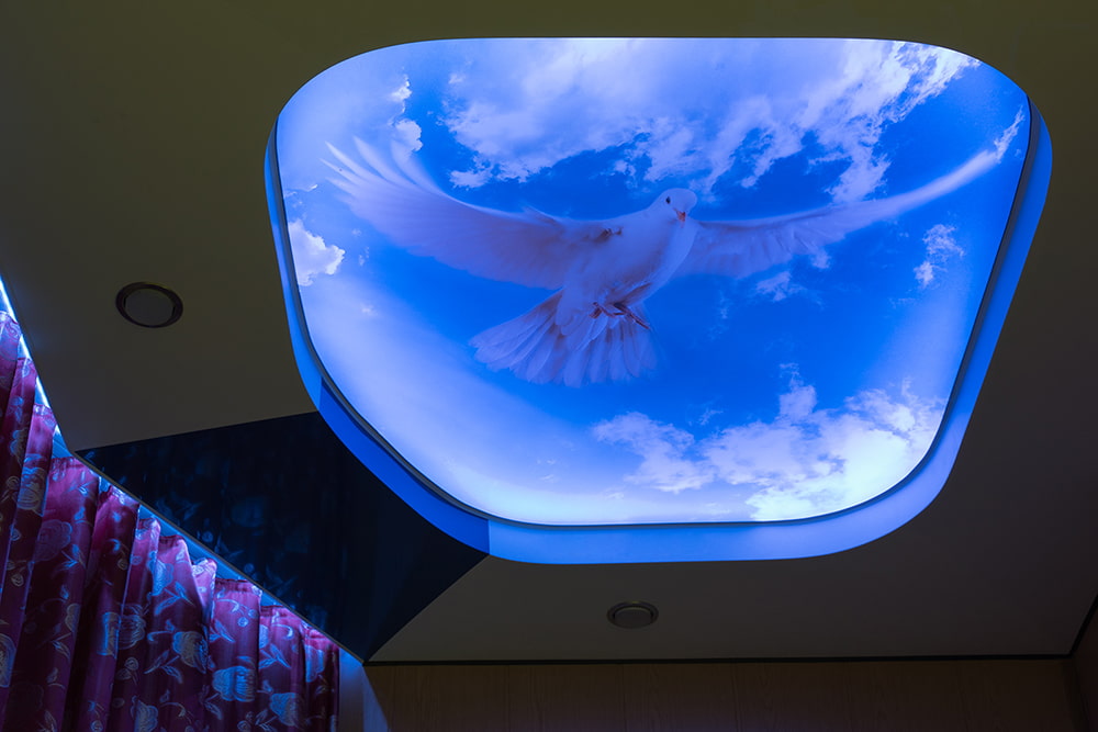 Sea waves, white fluffy clouds, abstract volumetric forms and other options - any ceiling configuration suitable for the general style of the interior is available for selection.