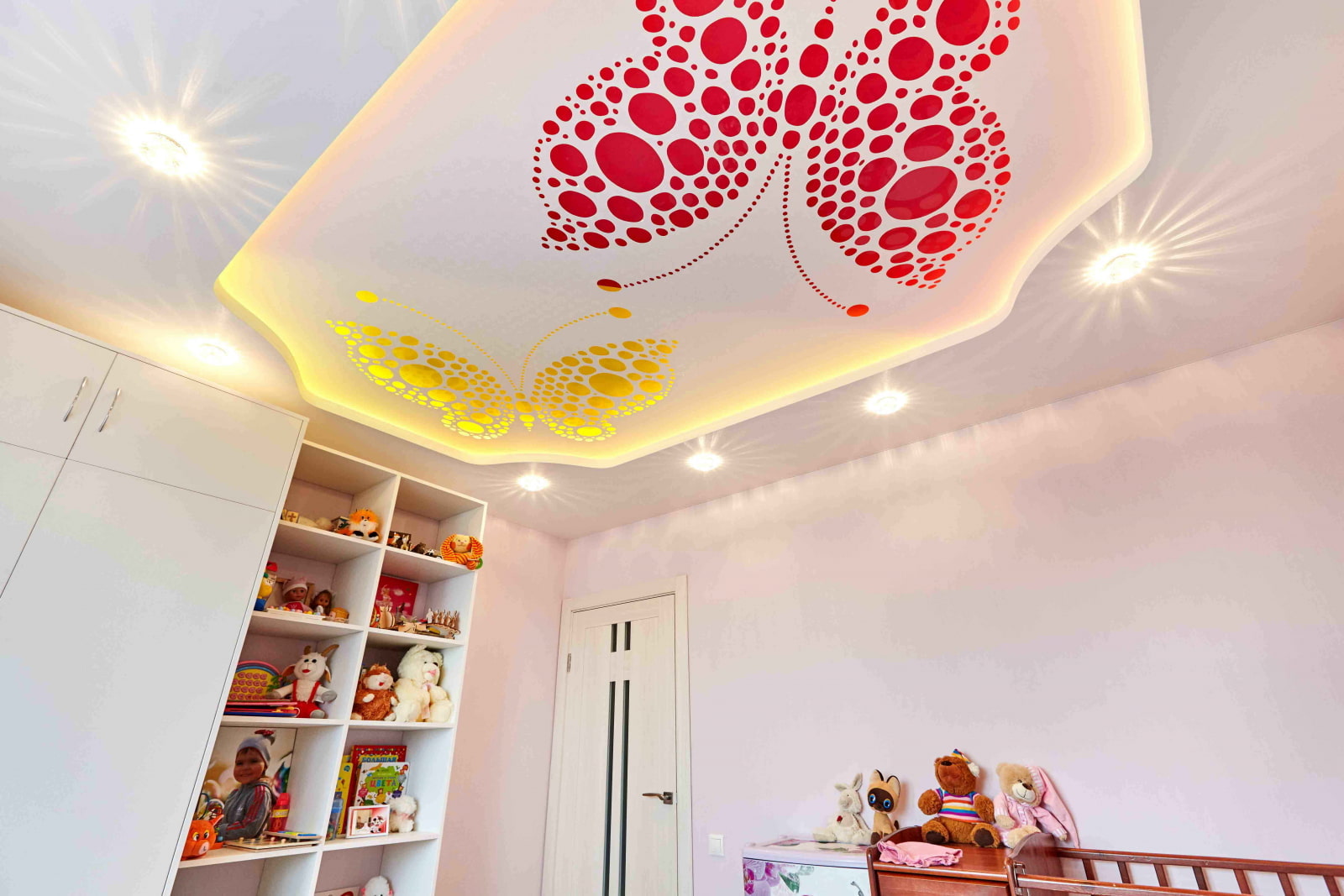 Specialized firms will produce a design stretch ceiling with lighting of any complexity. At the same time, installation takes a little time, and also does not require additional finishing.