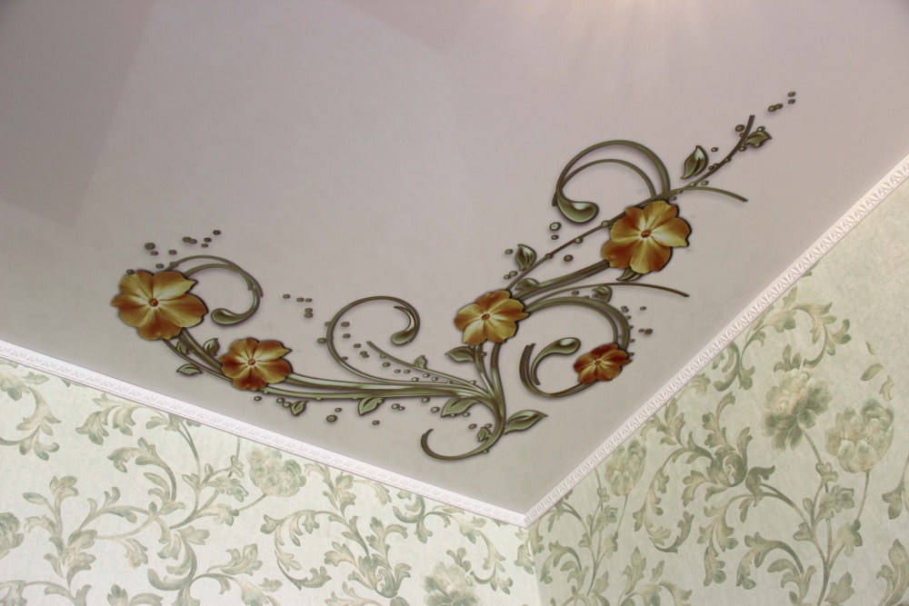 Floral motifs are among the most popular in the design of the ceiling space.