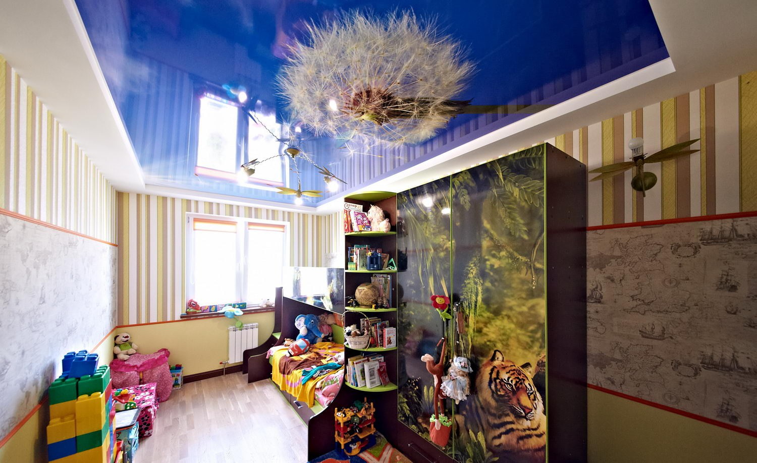 Due to the huge variety of photo canvases, you can choose the appropriate design option for the nursery, both for girls and boys. The unique color design of the ceiling will be the favorite object of the child in his room.