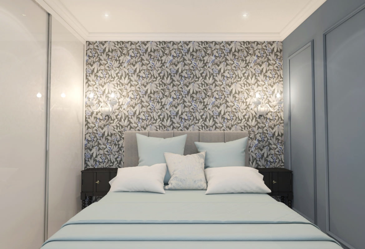 Wallpaper is chosen both in a single color and canvases decorated with neutral patterns or wide stripes.