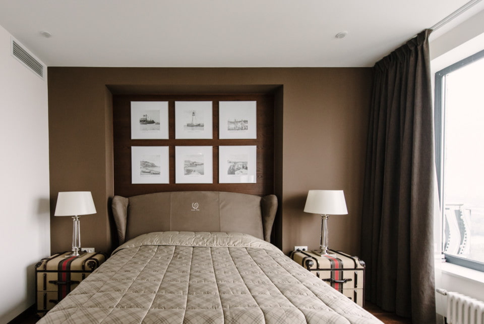 Located above the bed or sofa, narrow niches not only decorate the wall, but also provide an excellent opportunity to place various photographs, books, figurines or other accessories in it.
