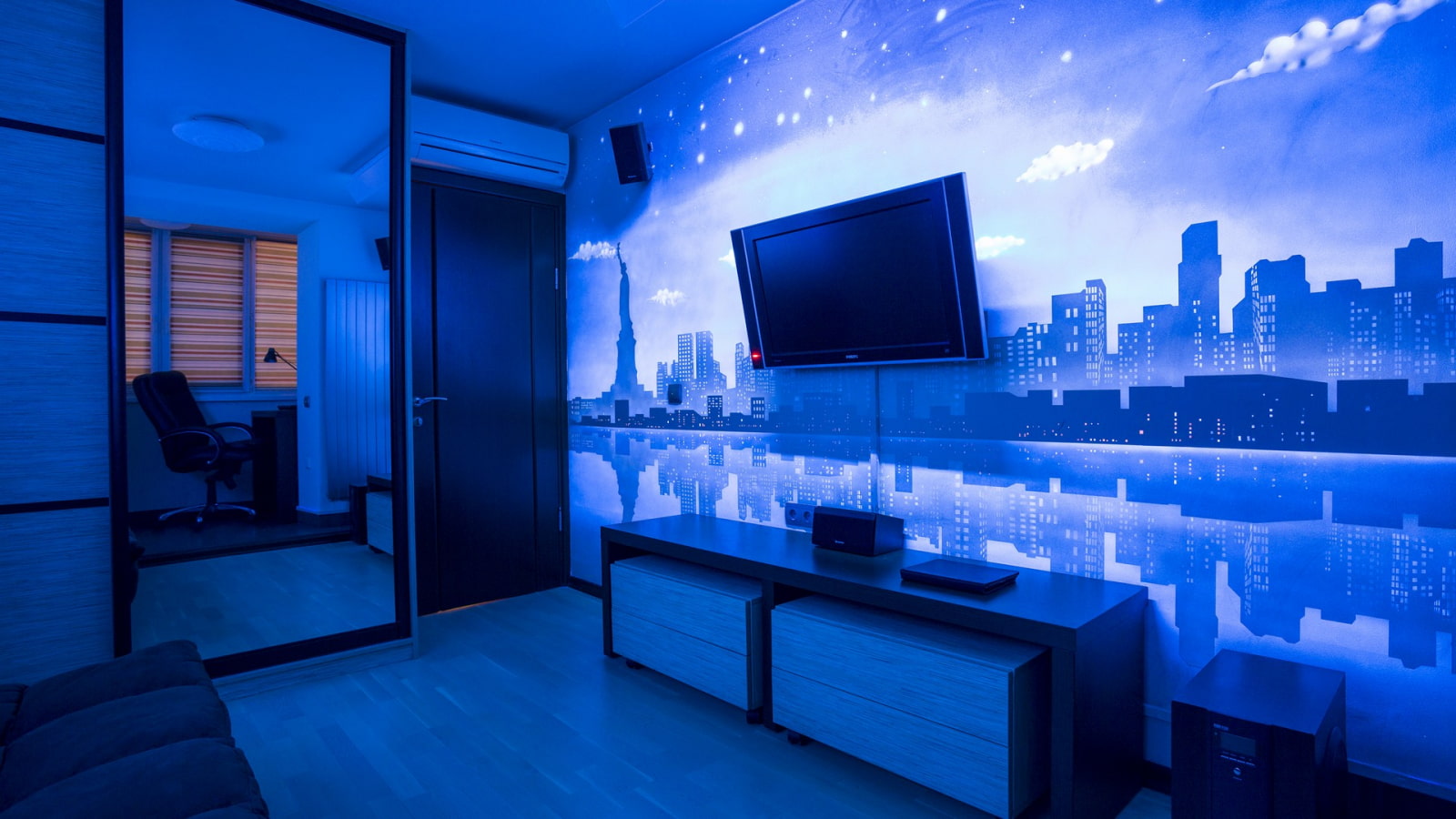 - Do not use too dynamic and intense images with cities in bedrooms and nurseries.