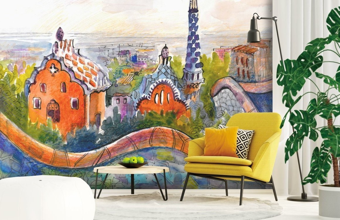 Drawings of the architecture of Barcelona, located on the walls, will leave no one indifferent. Wallpaper will emphasize the style and luxury of the interior and will certainly become its highlight.