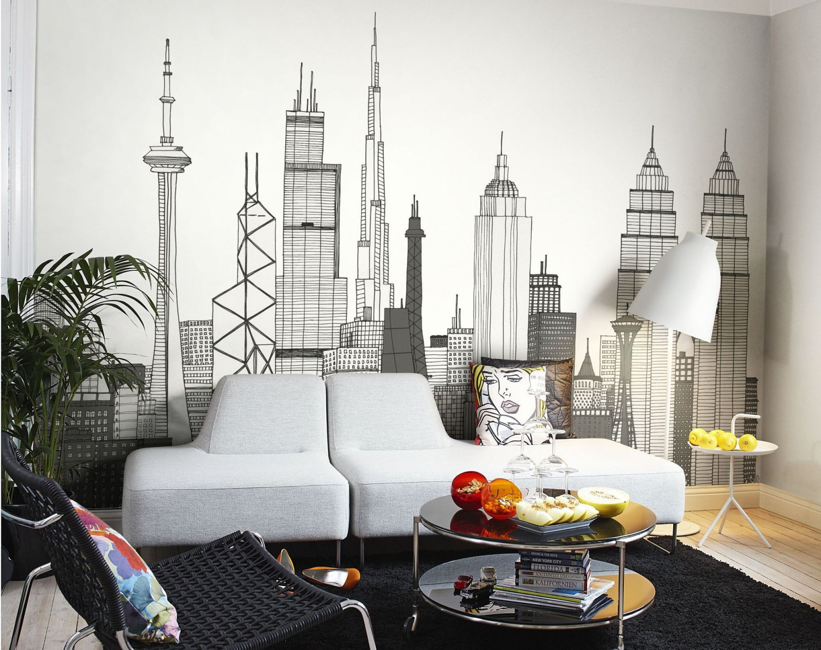Wallpaper with the city on the wall, with its colorful landscapes, make the interior interesting and non-trivial, change the atmosphere in it and bring new notes to the design of the room.