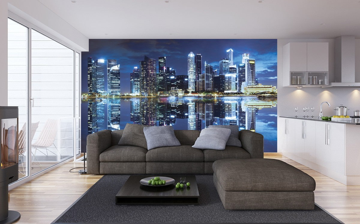 Photomurals with night cities look colorful and have a very original and attractive look. They are eye-catching and capable of transforming a room beyond recognition.