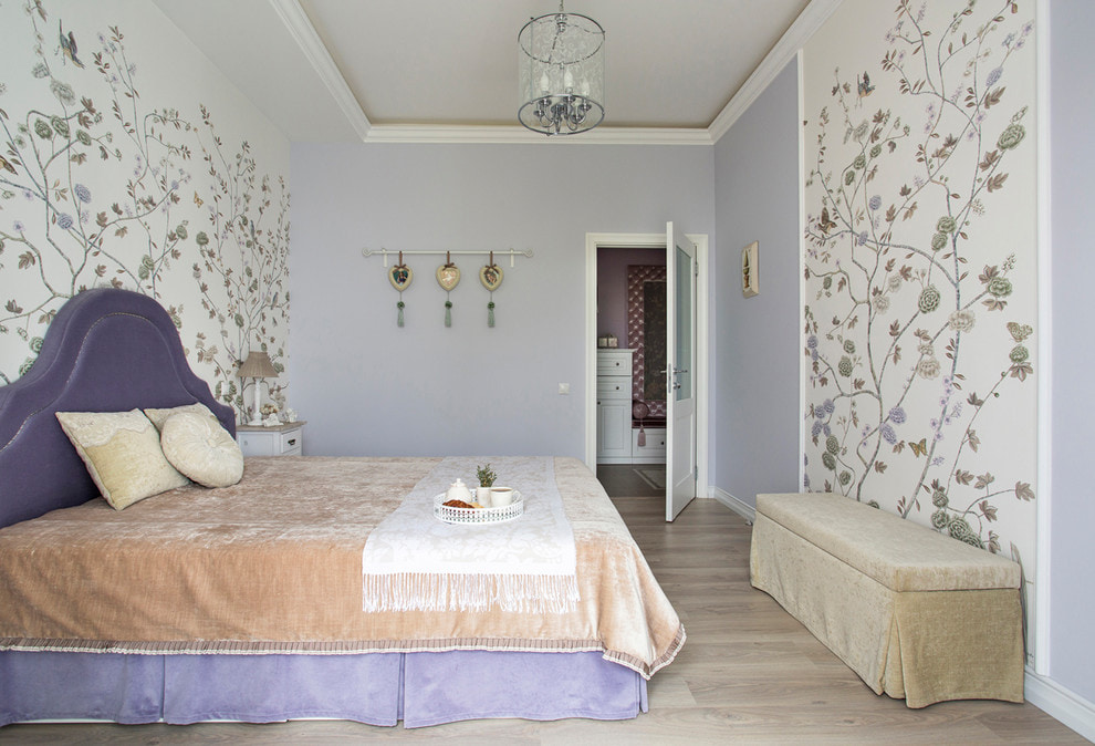 Companion wallpaper is a common design solution for the bedroom. In this way, finishing can be used to designate a sleeping or lounge area, as well as visually increase the space.