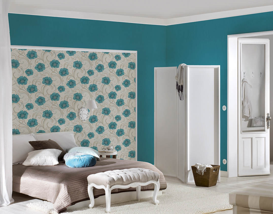 You can decorate the wall above the head of the bed with bright contrasting wallpaper companions, thereby highlighting and decorating it.