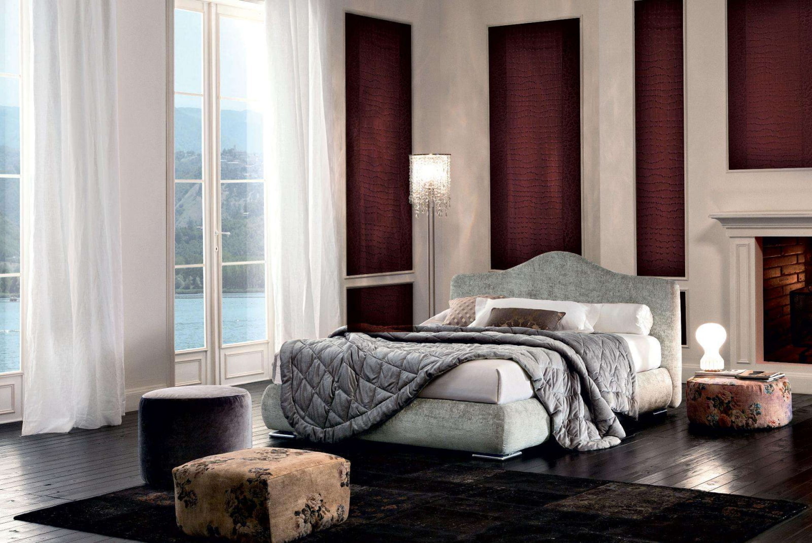Decorate only the headboard wall with leather upholstery wallpaper. This technique is appropriate in the styles of neo-classicism and art deco. You can also complement the tie points with either pearlescent buttons or rhinestones to add sparkle and glamor.