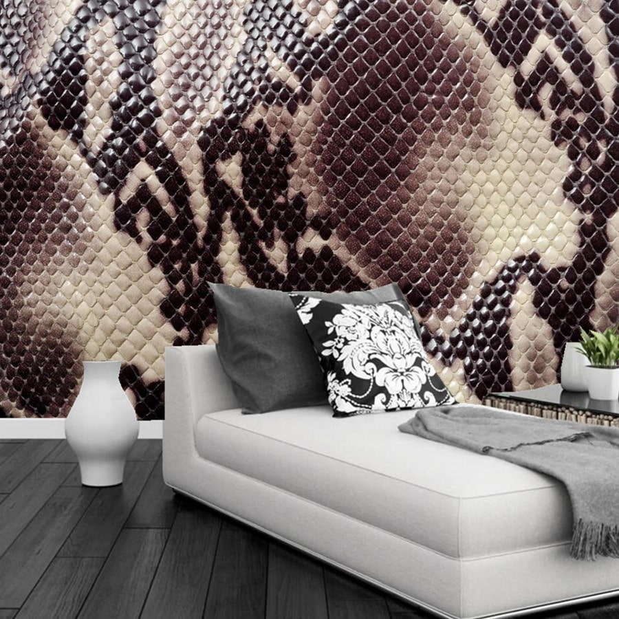 The most common and versatile pattern is python skin. Its main feature is that the relief of the scales visually creates volume. This type of finish in any color can be used to decorate different interiors.