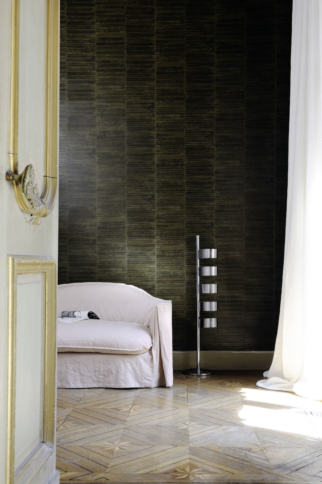 It is a very specific type of decoration. You can choose any color with different gloss. Opt for black, brown or light colors with a subtle glossy texture.