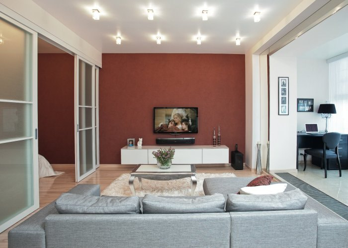 The living room as a room has several functions, it is a reception hall, a relaxation room and a place of most frequent stay. The living room should be comfortable and cozy, at the same time, bold colors and patterns, different combinations of textures and materials can be used in the hall. For example, rich colors can be in harmony with three-dimensional patterns on other surfaces.