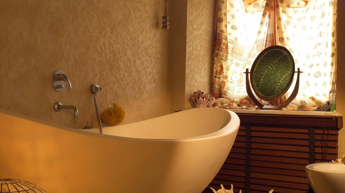 The most important indicator for a bathroom is its increased resistance to moisture. Paint can increase this property. Wallpaper for painting is an unusual way of decorating a bathroom, it looks elegant and goes well with tiles.