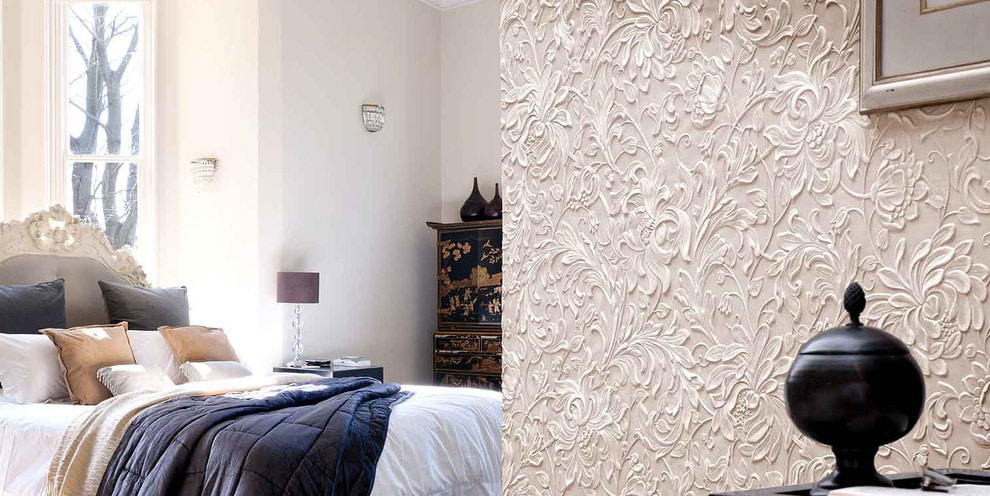 A textured coating can mimic different materials or depict a pattern or pattern. Embossed paintable wallpaper adds volume to the room and looks interesting in evening lighting. Almost all types of coatings are made with a textured top layer, which gives a variety of choices and a virtually seamless surface.
