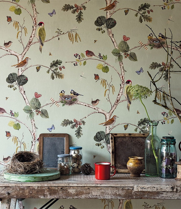 Wallpaper depicting trees and birds will associate with the forest, help you relax and escape from city life. Depending on the style of the picture and the color palette, the combination can decorate the walls of a modern, Scandinavian, country or Provence style.
