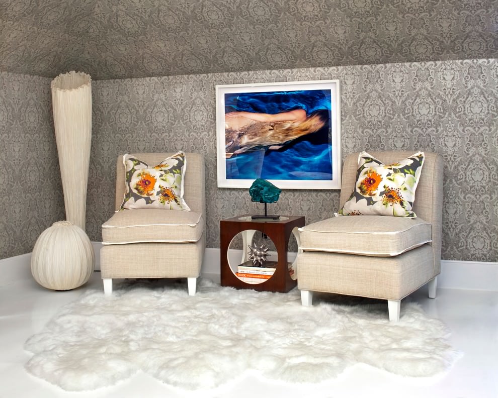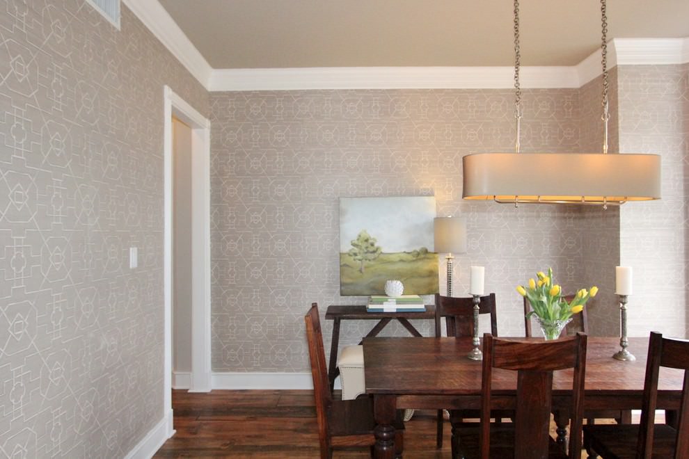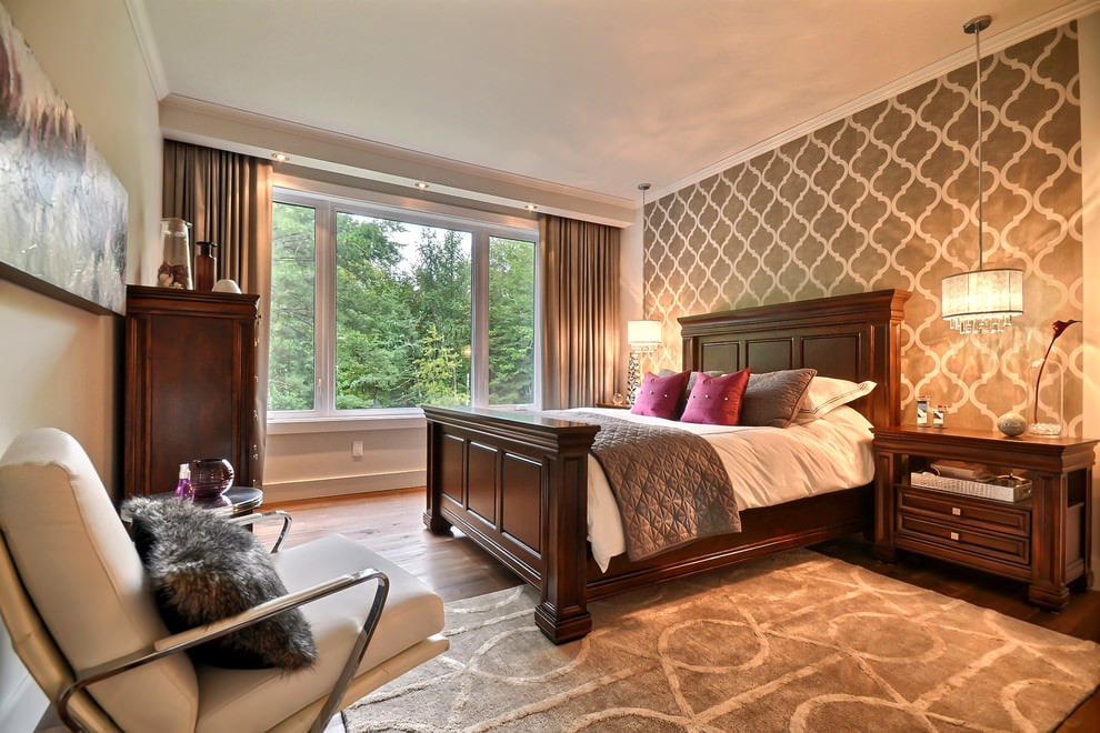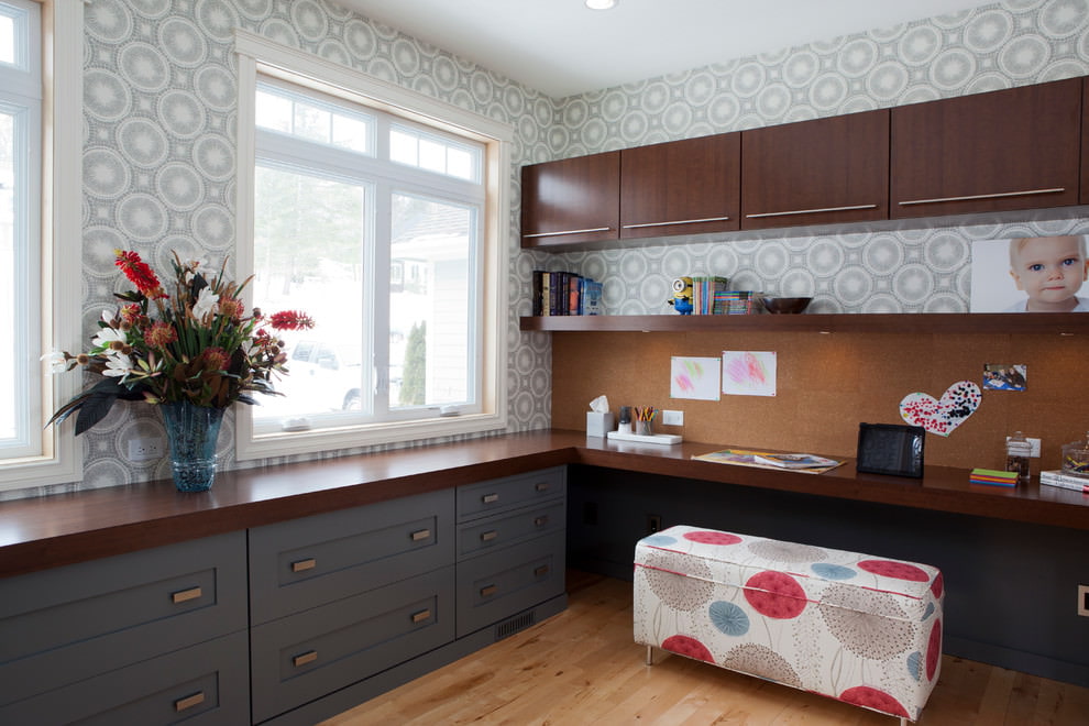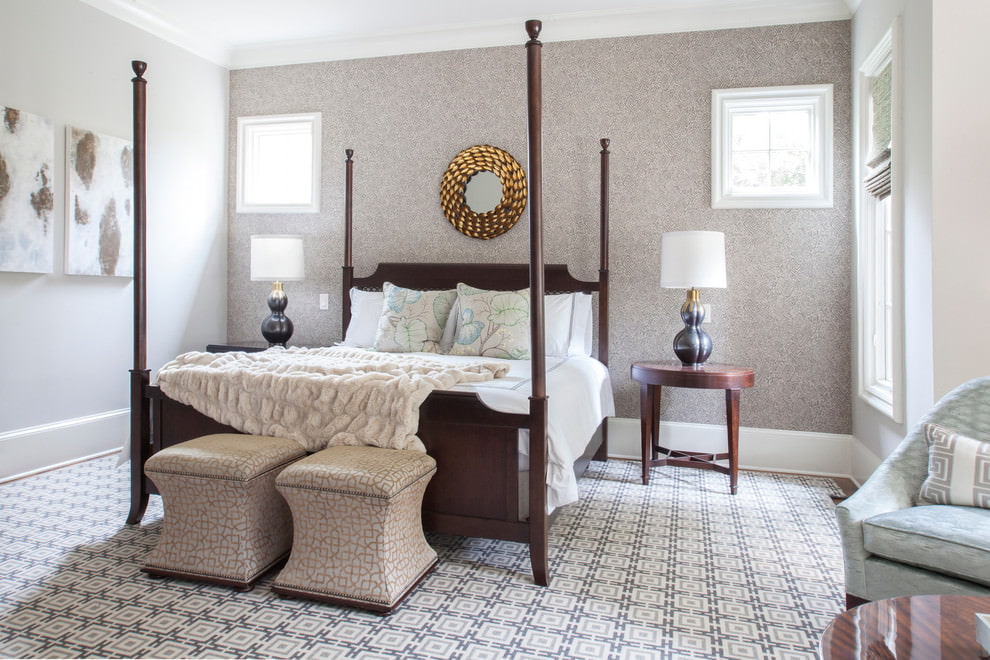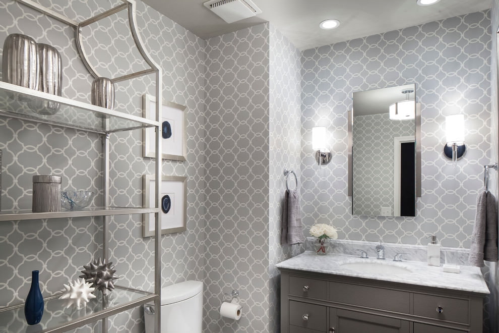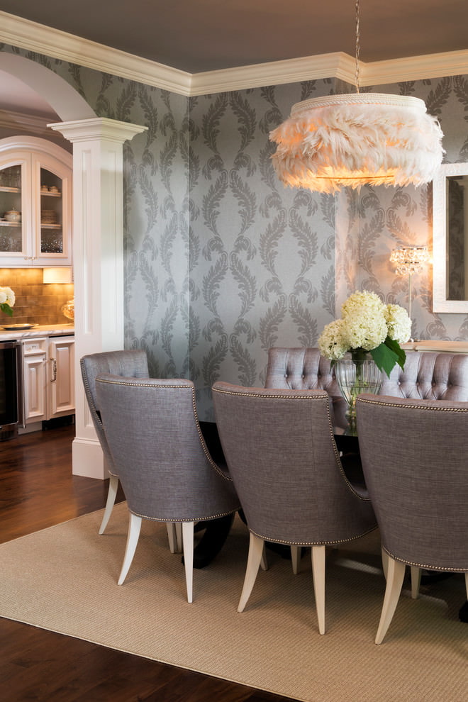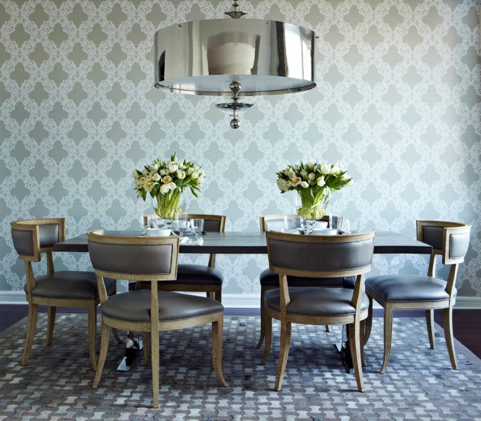 - Wallpaper with a pattern are suitable for the bedroom and living room in a classic style, and gray wallpaper with a pattern in bright colors will decorate the nursery. The color and size of the pattern depends on the companion color and the size of the room. Geometric and abstract patterns are suitable for medium to large rooms, small simple patterns are suitable for small ones.