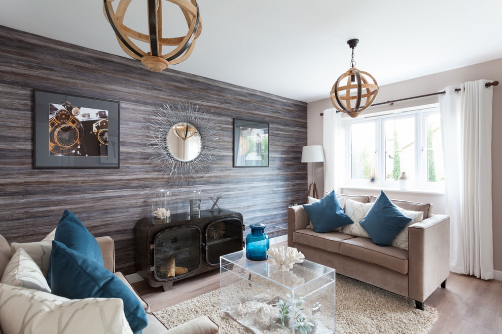 - Gray wallpaper can be used to decorate the wall by the fireplace or TV.