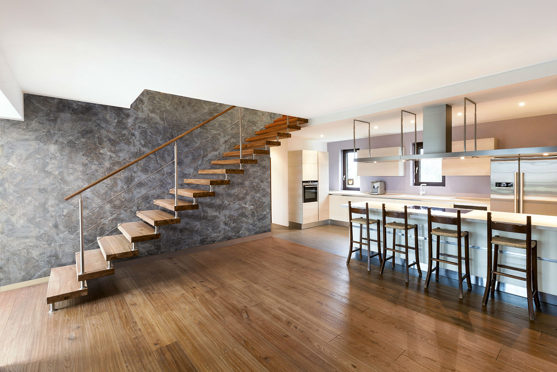 Metallic or stone flooring is used in a trendy loft style. Their deliberate rudeness is emphasized. Such wallpapers are applied, as a rule, on one wall or small ordered areas.