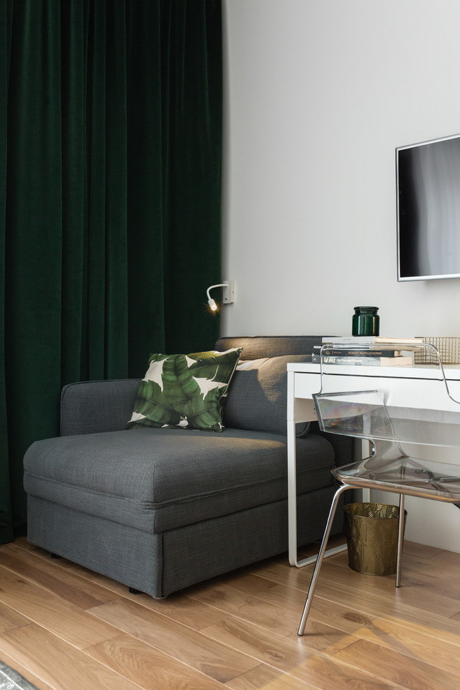 Important: If you are constantly using your computer, the monitor may reflect glare or appear dim in sunlight. Check in advance how convenient the location of the table is near the window and, in order not to close the curtains during the day, arrange your home office in the opposite corner.