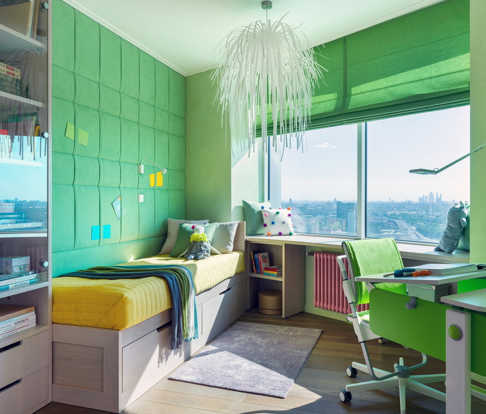 The richer and "simpler" the color, the more intrusive it looks in the interior. Bright greens, blues and yellows are good at children's room or as accents, that is, in a strictly limited number.