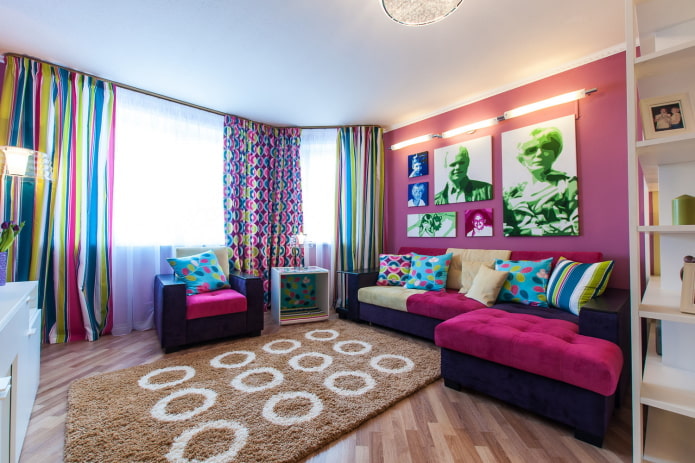 Use slightly less contrasting combinations, add neutral shades, do not overuse variegated ornaments. To create a bright yet harmonious environment (for example, in fusion style) requires a lot of skill.